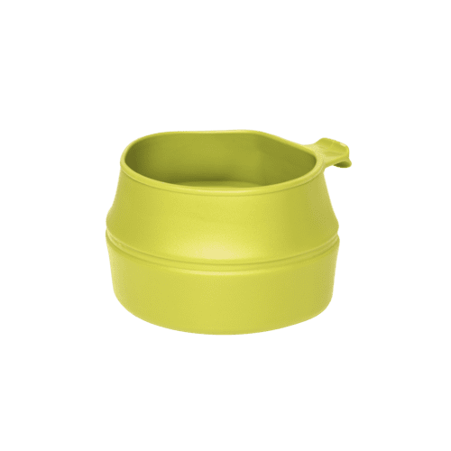 Leichte faltbare Tasse. Nach dem Entfalten nimmt er die Form eines stabilen Plastikbechers an, der sowohl kalte als auch heiße Getränke verkraftet (schmilzt nicht). Zusammengefaltet kann er sehr platzsparend verstaut werden.